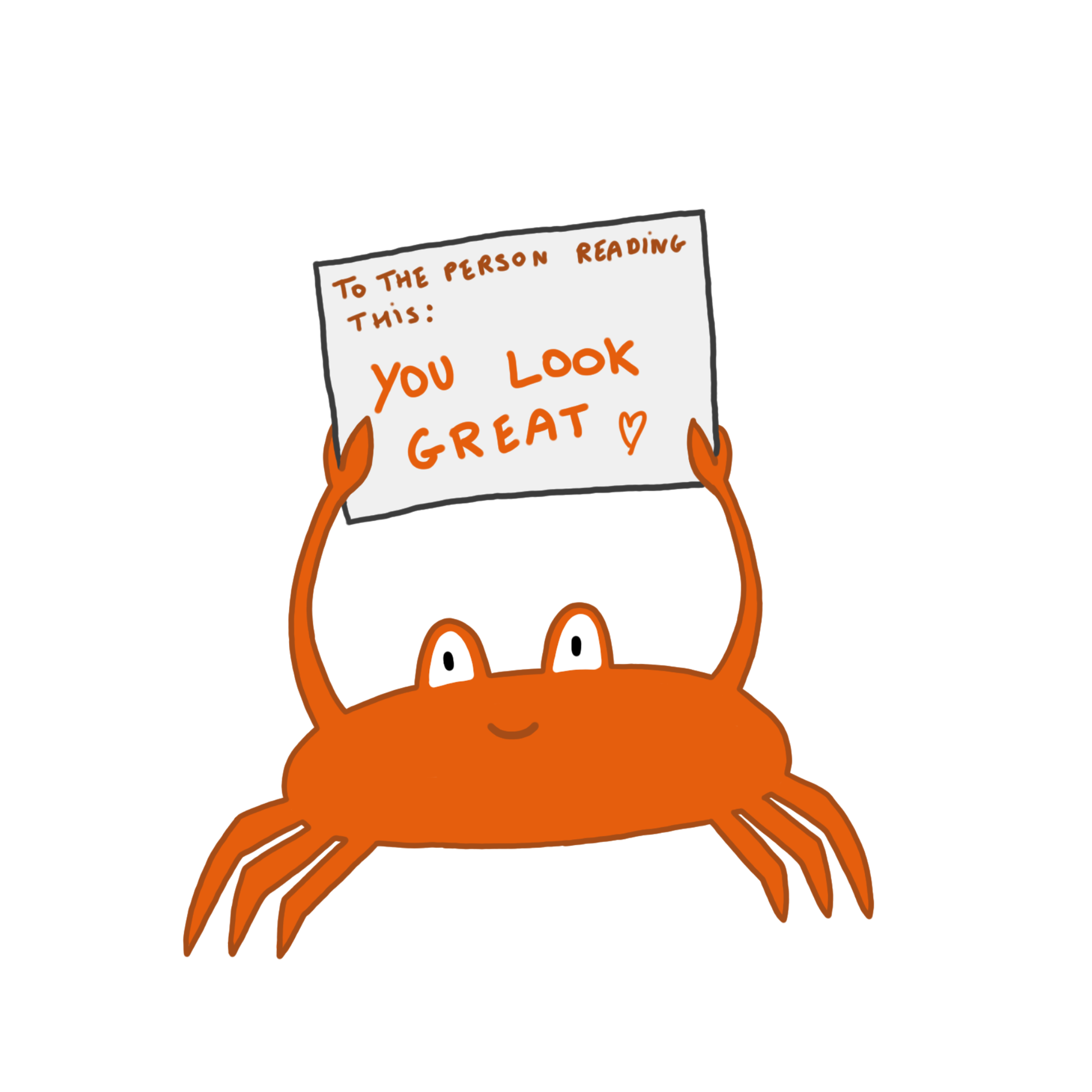 Wit unisex T-shirt met een schattige krab en de tekst “To the person reading this: YOU LOOK GREAT” erbij gedrukt.